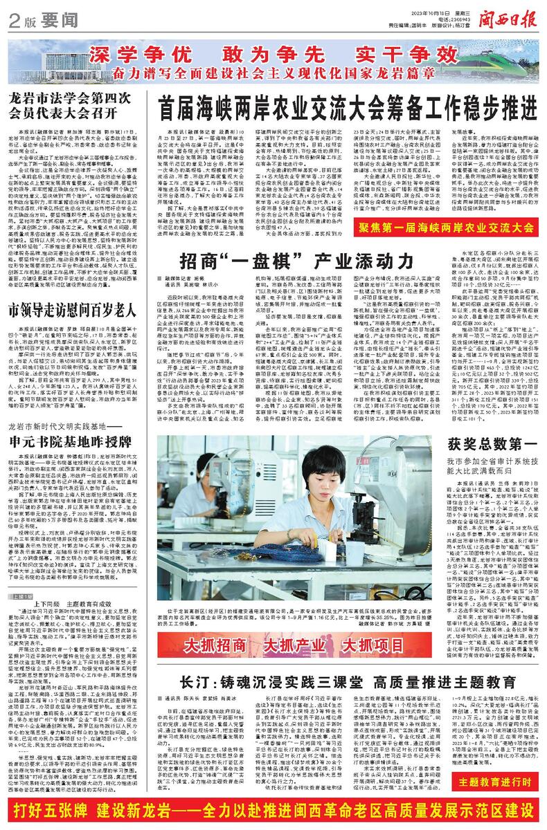 本报讯(融媒体记者 钟德彪)昨日,龙岩市新时代文明实践基地——申元书院基地授牌仪式在永定区培丰镇举行。市政协副主席、闽西客家联谊会会长刘友洪,市人大常委会原副主任吕庆昌,市政府一级巡视员郭丽珍,闽西职业技术学院党委书记卢伟耀,龙岩市直、永定区直相关部门负责人,专家学者代表近百人参加了活动。