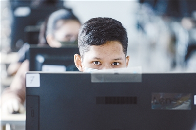 7月6日,在印度尼西亚西爪哇省德波的一所大学,一名考生佩戴口罩参加考试。当日,印尼国家公立大学入学考试在全国范围内举行,考试分两期举行,时间为7月5日至7月14日和7月20日至7月29日,采用电脑考试的形式。受疫情影响,参加此次考试的考生将佩戴口罩并测量体温,体温超过37.5度的考生将不得进入考场参加考试。