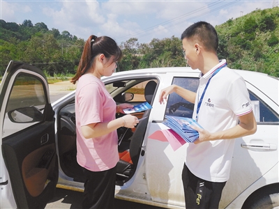 新罗区交通运输局禁毒志愿者向驾校教练和学员发放专门印制的禁毒宣传手册