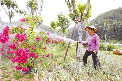永定区实施城区西溪河“一河两岸”整治提升项目,全长5.5公里,总面积约为40.30公顷,总投资约5000万元,以“一脉三段多点”作为景观结构,分二期建设,改善西溪河生态环境提升永定区城市形象。到目前,项目示范段(寒陂下至西溪口)已基本完工,绿韵鲜花长廊美景大大提升西大门连接莆永高速主出入口景观。图为近日项目示范段在养护施工。 记者 傅长盛 通讯员 林忠成 摄