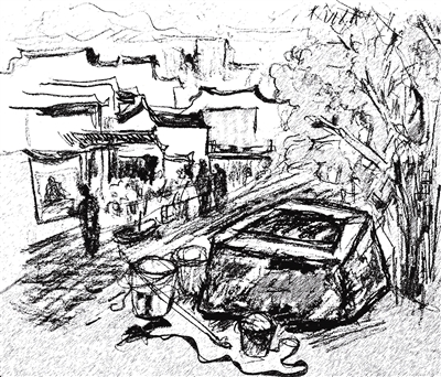 出了院门,一路前行。看见半截古砖墙上,爬满绿意婆娑的藤蔓。一些断壁残垣的砖缝里,开出一朵两朵紫色的小花。一处老宅的屋顶上,长着狗尾巴草。分外有味道。人家门前种了许多兰花,也有许多茉莉。人从花前经过,满鼻清香。小巷就这样热闹了自然的气息。忽然窜出两只狗,看见生人,不住高叫。正发怵,抬头与另一民宅“八砖世第”不期而遇。不由想起一生性散漫之人,德宗时任翰林学士的李程。按照当时的朝规,冬中日影及五砖,为入直之候。李程却总等到日影恒过八砖乃至。众呼其为“八砖学士”。皇帝却觉得这个老迟到的“八砖学士”有淡定从容之风,青睐有加。此小巷中民宅以“八砖世第”为名,想来“八砖世第”宅院先主定同唐人李程一般性情相投。诚然,这样的地方,滋长出来的人,气质是镶在骨子里的。