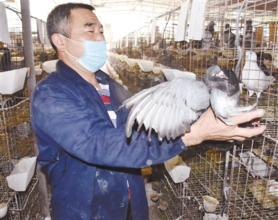 近日,永定区下洋镇肉鸽养殖户胡小龙在察看鸽子长势,他的养殖场年养肉鸽5000只。肉鸽养殖成为近年永定农民致富奔小康的产业之一,全区养殖肉鸽农户达300户,年养肉鸽近60万只,年产值约1500万元。 通讯员 郑素梅 摄