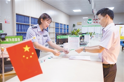 我市公安机关持续深化“放管服”改革,不断优化公安政务服务,加大便民服务力度。上图为户籍服务窗口,右图为公安民警在中心城区繁华路段巡逻。