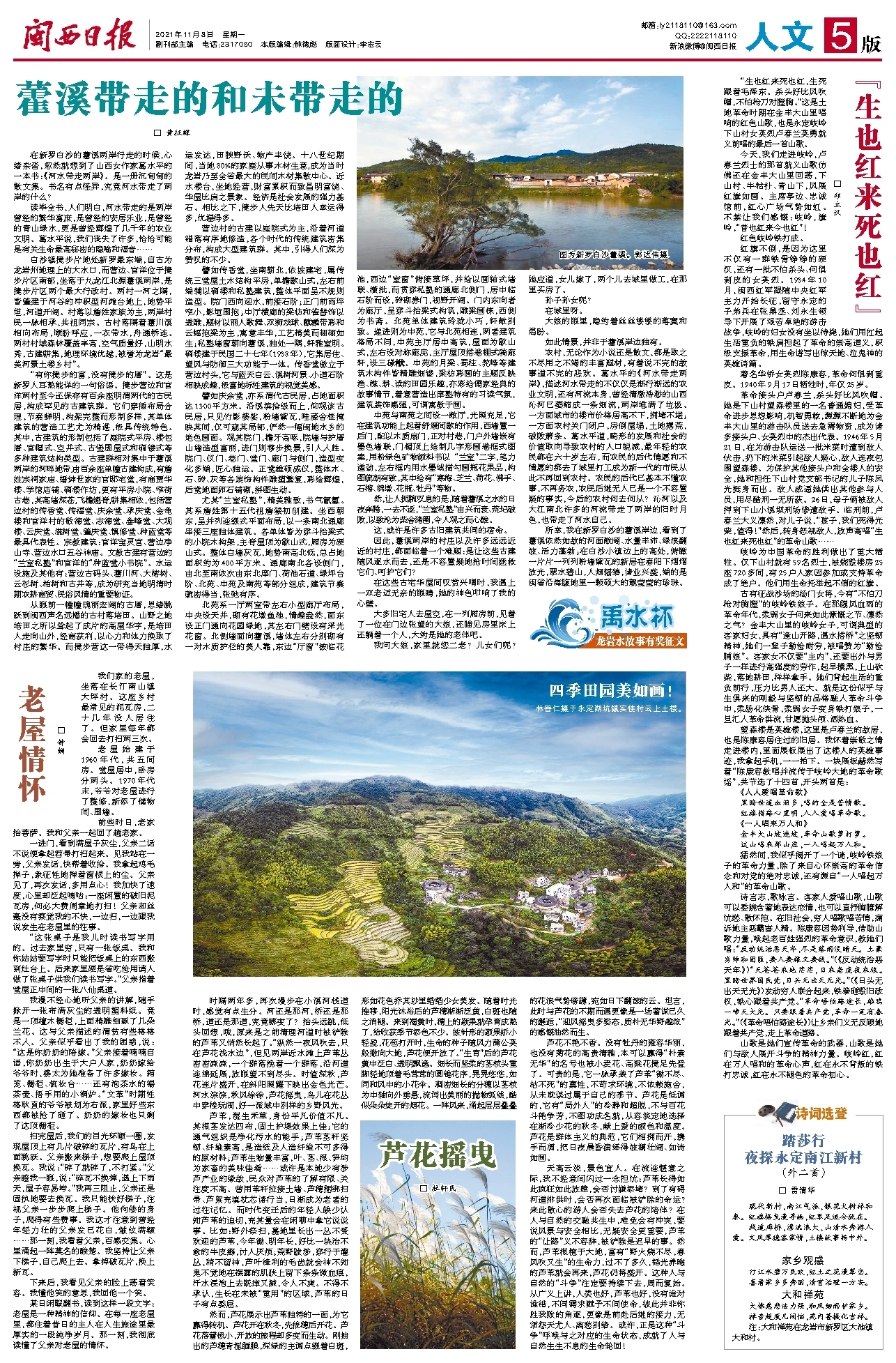 在新罗白沙的藿溪两岸行走的时候,心绪杂沓,忽然就想到了山西女作家葛水平的一本书:《河水带走两岸》。是一册沉甸甸的散文集。书名有点怪异,究竟河水带走了两岸的什么?