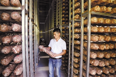 连城县新泉镇益康食用菌专业合作社菌棒加工。 记者 曾志明 摄