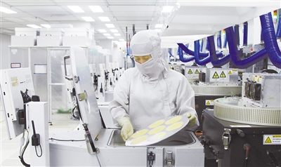 中晶科技蚀刻工段一角,工人正在作业。