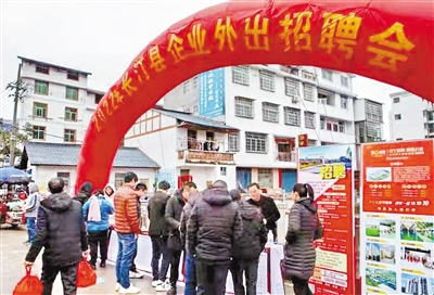 2月8日,长汀县人社局组织重点企业到宁化县治平乡招聘用工。