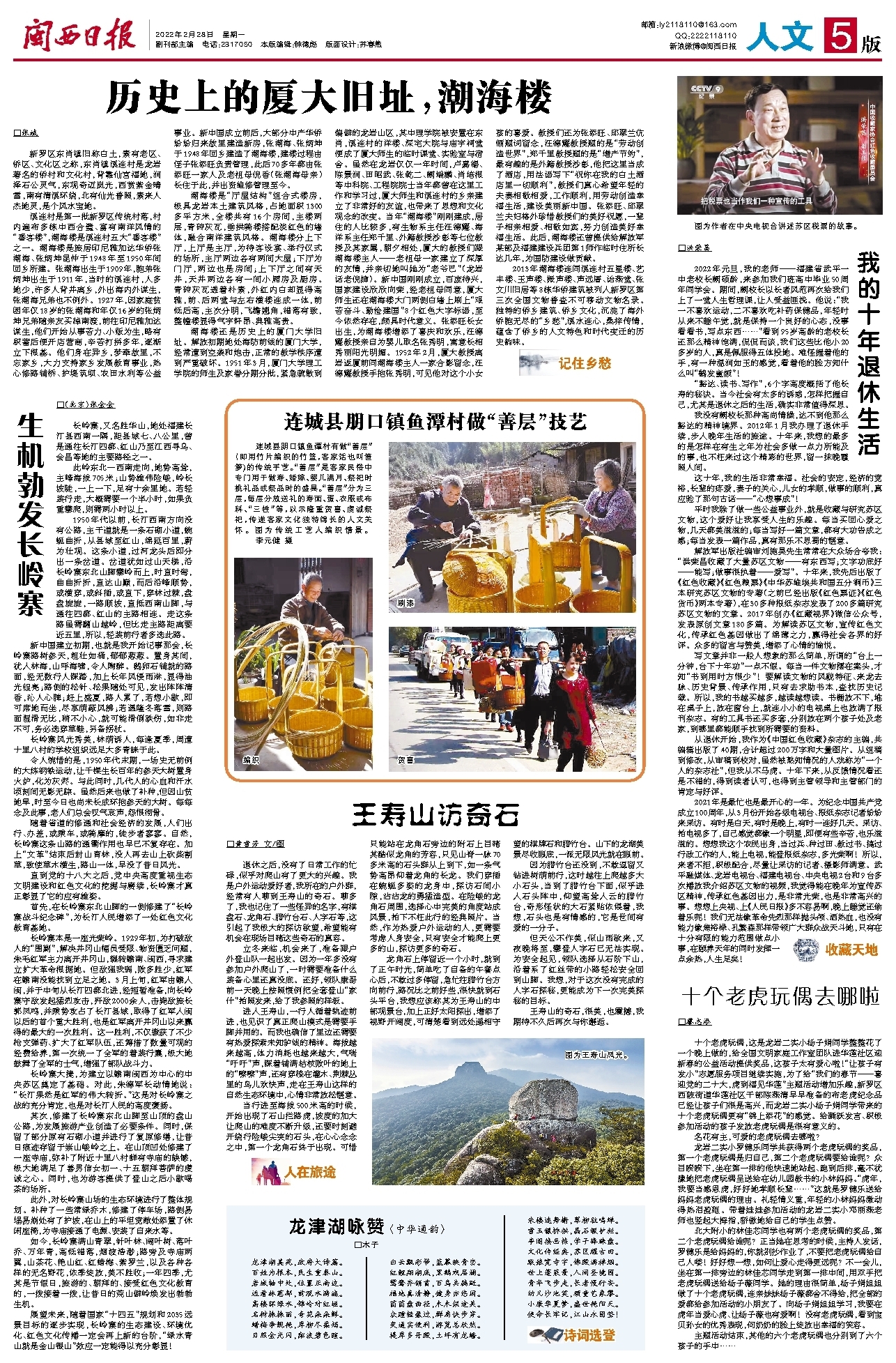 潮海楼还是历史上的厦门大学旧址。解放初期地处海防前线的厦门大学,经常遭到空袭和炮击,正常的教学秩序遭到严重破坏。1951年3月,厦门大学理工学院的师生及家眷分期分批,紧急疏散到偏僻的龙岩山区,其中理学院被安置在东肖,溪连村的洋楼、深宅大院与庙宇祠堂便成了厦大师生的临时课堂、实验室与宿舍。虽然在龙岩仅仅一年时间,卢嘉锡、陈景润、田昭武、张乾二、阙端麟、肖培根等中科院、工程院院士当年都曾在这里工作和学习过,厦大师生和溪连村的乡亲建立了非常好的友谊,也带来了思想和文化观念的改变。当年“潮海楼”刚刚建成,居住的人比较多,有生物系主任汪德耀、海洋系主任郑千里、外籍教授沙彭等七位教授及其家属,朝夕相处,厦大的教授们跟潮海楼主人——老祖母一家建立了深厚的友情,并亲切地叫她为“老爷巴”(龙岩话老倪婶)。新中国刚刚成立,百废待兴,国家建设欣欣向荣,经老祖母同意,厦大师生还在潮海楼大门两侧白墙上刷上“艰苦奋斗、勤俭建国”8个红色大字标语,至今依然存在,颇具时代意义。张添旺长女出生,为潮海楼增添了喜庆和欢乐,汪德耀教授亲自为婴儿取名张秀明,寓意长相秀丽阳光明媚。1952年2月,厦大教授离岩返厦前同潮海楼主人一家合影留念,汪德耀教授手抱张秀明,可见他对这个小女孩的喜爱。教授们还为张添旺、邱翠兰伉俪题词留念,汪德耀教授题的是“劳动创造世界”,郑千里教授题的是“增产节约”,最有趣的是外籍教授沙彭,他把这里当成了酒店,用法语写下“祝你在我的白土酒店里一切顺利”,教授们真心希望年轻的夫妻相敬相爱,工作顺利,用劳动创造幸福生活,建设美丽新中国。张添旺、邱翠兰夫妇格外珍惜教授们的美好祝愿,一辈子相亲相爱、相敬如宾,努力创造美好幸福生活。此后,潮海楼还曾提供给解放军某部及福建建设兵团第1师作临时住所长达几年,为国防建设做贡献。