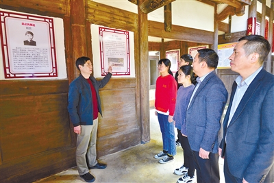 图为吴必先烈士孙子(左)在陈列室向参观者讲述爷爷的革命事迹。