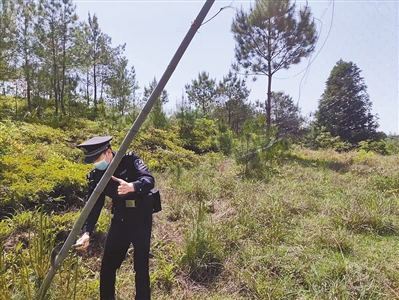 4月7日下午,长汀县公安局三洲派出所积极开展森林巡查工作,及时拆除多个捕鸟网。民辅警在三洲村各个山头巡查时发现有人私自在山上架设捕鸟网,为预防野生鸟类受到伤害,民警当场将捕鸟网拆除销毁。 通讯员 张筱晨 摄