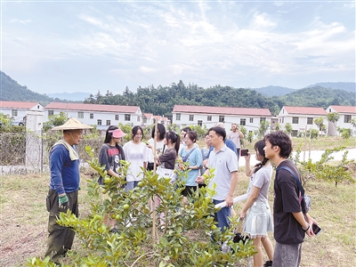 日前,福建农林大学风景园林与艺术学院学生暑期“三下乡”实践队联合新罗区雁石镇的部分村委会,在雁石镇开展了为期一周的乡村调研实践活动。此次活动以习近平总书记关于“三农”工作的重要论述作为指引,围绕乡村振兴政策、乡村规划等内容展开,通过走访调研等方式,深化实践队成员对农村、农业、农民的了解。图为“三下乡”实践队在厦中村与果农讨论的场景。