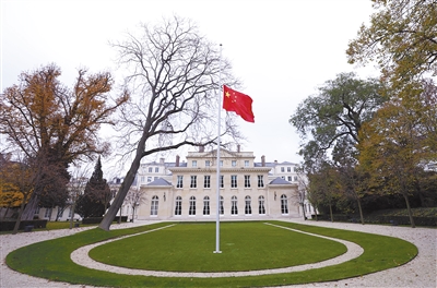 11月30日,中国驻法国大使馆下半旗志哀,悼念江泽民同志逝世。 新华社记者 高静 摄