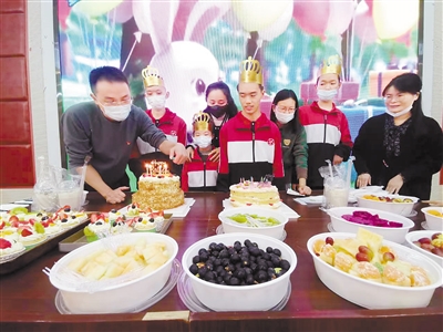 近日,龙岩市特殊教育学校启动“大爱龙岩 同心育苗”活动,学校领导、党员教师、班主任等组成“爱心爸爸”“爱心妈妈”团队与51名留守儿童、孤儿、贫困学生结对帮扶,定期与孩子们沟通交流,在思想、生活、学习等方面给予更多的关心和帮助。图为孩子们在“爱心爸爸”“爱心妈妈”的陪伴下开心地过生日。 融媒体记者 杨燕 通讯员 连瑜 摄