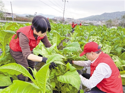 近日,受强对流天气影响,永定部分乡镇烟叶不同程度受灾,区烟草专卖局组织党员突击队奔赴湖雷镇上南村、培丰镇洪源村,帮助群众把翻倒在田里的烟叶一株一株扶正,清理残枝,清沟排水。