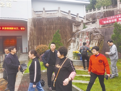 瞿秋白烈士1935年6月18日在长汀就义后,其遗体被隐埋在县城郊外“盘龙岗”程氏祖坟边,当时虽不知其身份,但汀城程氏族人年年清明期间都会一并祭奠,直至新中国成立,建起烈士纪念碑、纪念馆后,他们仍沿续这一传统,年年转移至此祭扫。图为1日上午,一群人在瞿秋白烈士就义处献花。 融媒体记者 程璧晖 摄