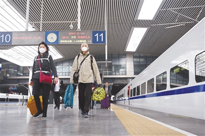 4月1日,乘客行走在福州火车站站台,准备登上开往香港西九龙的G3001次列车。当日,福州至香港西九龙的G3001次列车从福州火车站开出,标志着福州至香港高铁恢复开行。