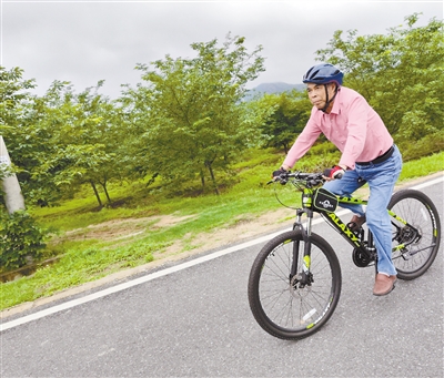老詹平时还经常骑自行车锻炼。