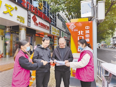 “北门大妈”走街串巷向居民宣传禁毒、反诈、创城等知识。(资料图)