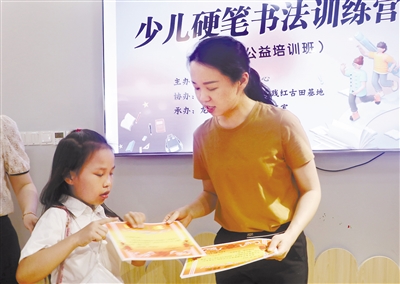 为持续打造“大爱龙岩”精神文明品牌,塑造龙岩市融媒体中心公益形象,引领社会各阶层多关注弱势群体,今年3月至5月,龙岩市融媒体中心在龙岩新时代文明实践红古田基地(龙津书房)举办了首期公益课堂——少儿硬笔书法训练营活动,共有20多名适龄儿童参加活动。图为近日活动现场。 融媒体记者 许文星 童晓敏 摄