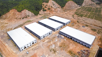 近日,位于龙岩文秀数字智造产业园的省重点项目——永定3万吨新型环保制品项目标准厂房内,工人师傅们正忙着加快钢结构扫尾工作,目前,该项目5栋钢结构厂房全部完工,比计划提前20多天完成,完成投资超过1亿元。该项目计划投资5.2亿元,用地面积约80亩,建设年产5亿条的工业包装袋生产线10条,建成达产后,年产值达5亿元以上。图为该项目钢结构厂房鸟瞰图。