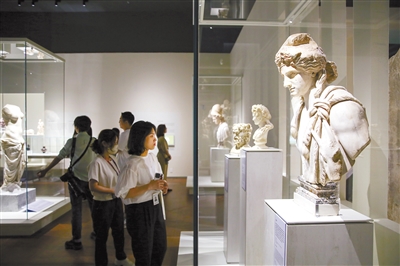 6月14日,人们在韩国首尔国立中央博物馆参观古希腊和古罗马文物展品。当日,126件古希腊和古罗马文物展品亮相韩国国立中央博物馆。据了解,这些展品均来自奥地利维也纳艺术史博物馆。 新华社记者 王益亮 摄
