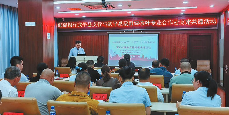 近日,邮储银行武平县支行携手武平县梁野绿茶叶专业合作社开展“绿韵桃溪福茶 贷动乡村振兴”银企战略合作暨党建共建活动。