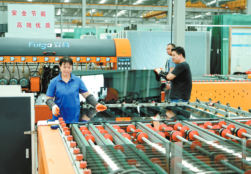 近日,在龙岩高新区(经开区)福建标茂高端玻璃深加工项目生产车间内,工人正在钢化玻璃生产线上进行生产。该项目总投资2亿元,占地面积36300平方米,年深加工钢化玻璃120万平方米,在三年内,产品已辐射省内外并出口至东南亚国家及欧美地区。 融媒体记者 郭亦斌 章宸睿 摄