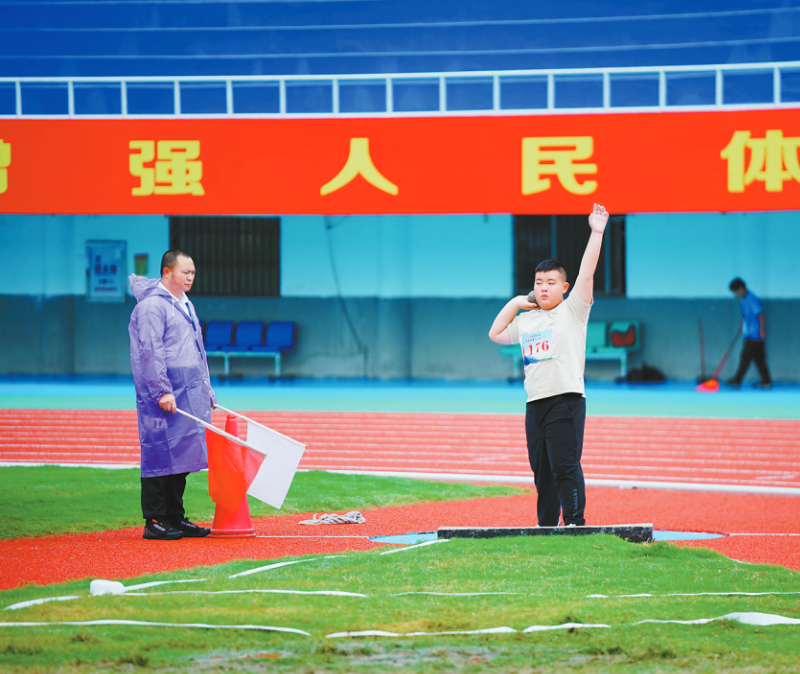 ↑图为青少年男子组铅球比赛现场。 融媒体记者 章宸睿 谢泽铧 摄