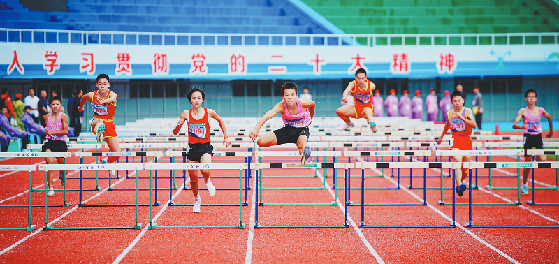 ↑28日,市运会进行了男子青少年乙组110米栏决赛,长汀代表队夺冠。 融媒体记者 章宸睿 谢泽铧 摄