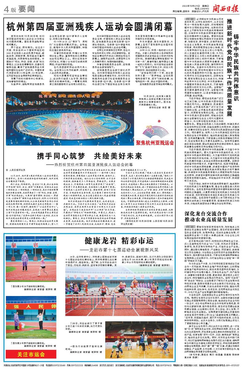 杭州第四届亚洲残疾人运动会圆满闭幕