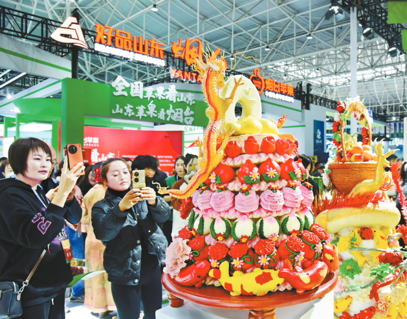 11月9日,参会者在展会上参观拍摄。当日,由农业农村部、山东省人民政府共同主办的第二十届中国国际农产品交易会在山东省青岛市开幕,近3000家企业携2万余种展品参展,吸引各地专业采购商逾3万人参加。