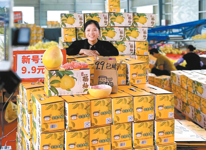 永定电商企业主播正在推介本地出产的红心蜜柚。通讯员 黄秋萍 摄