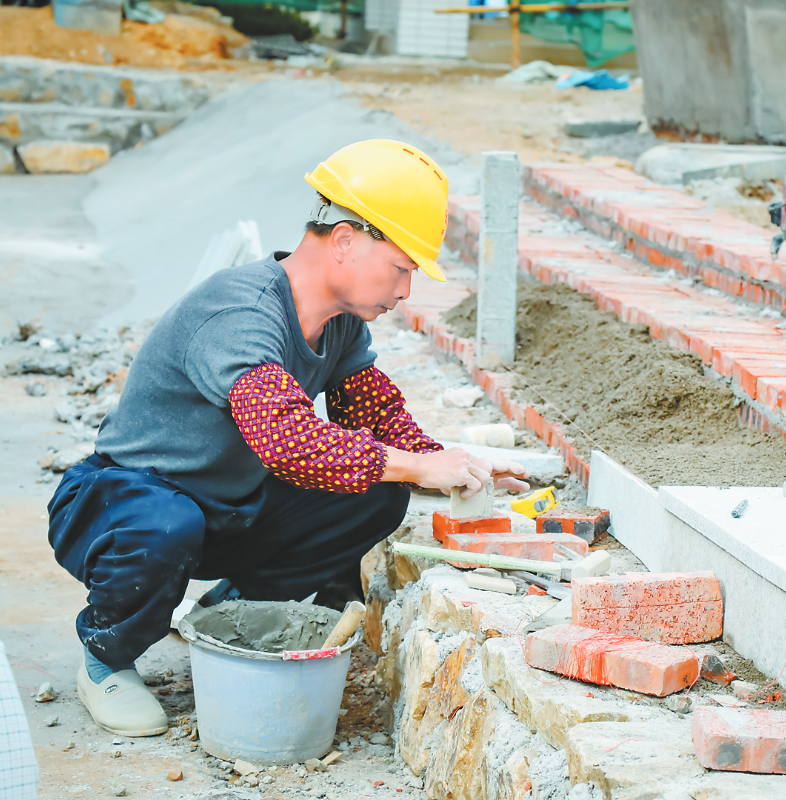 闽西职业技术学院“团结渠”工程充分利用已有建筑和新建建筑间空地,结合海绵城市要求,按“团结渠”原走向进行建设美化,融入校园周边建筑,将成为校园景观水道。图为近日施工现场。