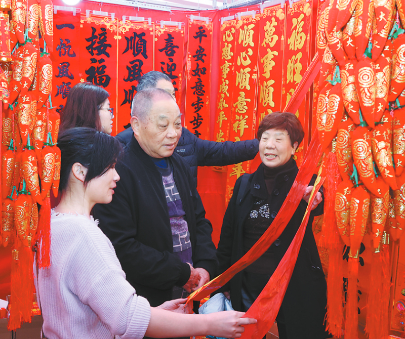 昨日,记者在“闽西交易城年货嘉年华”现场看到,摊位前人头攒动,大家都在为过年准备年货。喜庆的春节饰品、糖果饼干、闽西特产等各种年节商品被摆放在显眼位置,琳琅满目。