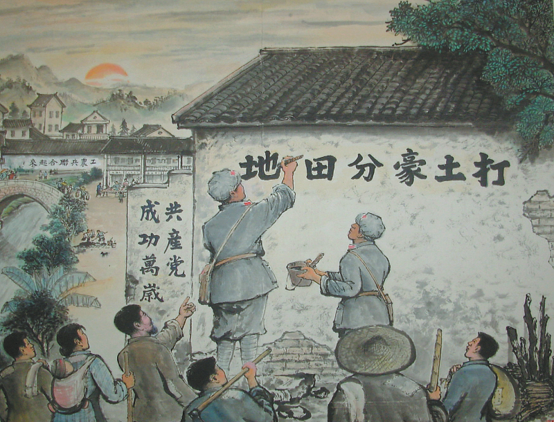 红军书写标语(宣传画)。宋客摄于广东平远红四军纪念馆
