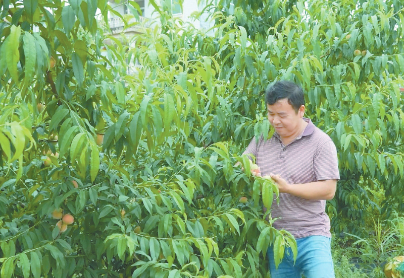 近年来,武平县万安镇深入实施“生态立镇、产业强镇、创新活镇、旅游兴镇”镇域发展战略,因地制宜,积极调整产业结构,发展黄桃、鹰嘴桃、紫灵芝、金线莲等特色农业产业,真正实现让乡村活起来、农民富起来。图为昨日果农在查看黄桃长势。通讯员 石沅平 王展雄 摄