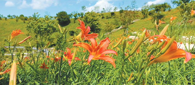 正值初夏,漳平市永福镇茶旅景区里的萱草花开始陆续绽放。数万株萱草花在微风中摇曳生姿,与蓝天白云、青翠茶山交相辉映,美丽壮观。走进山间小路,看那山坡开满金灿灿的萱草花,一步一景,诗情画意,让人流连忘返。
