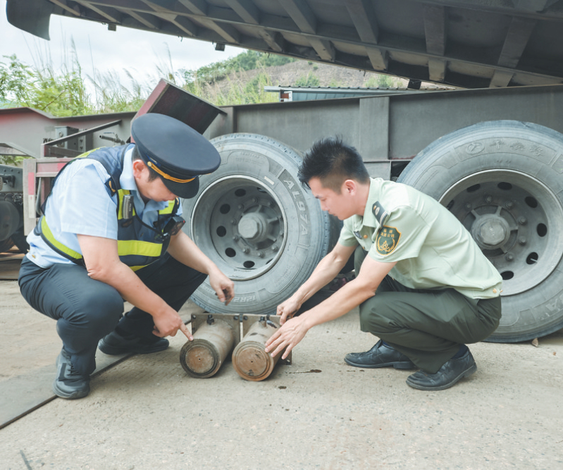 近日,龙岩高速执法支队联合省高速集团龙岩管理分公司、高速交警等部门在永定坎市、岐岭、高陂、漳平等辖区重点站口部署执法力量,查处违法行为。行动中,执法人员在坎市收费站查获一辆非法改装超限(闽F籍)货车。执法人员立即要求驾驶员拆除液压顶泵装置和卸载超重货物,消除违法行为。同时,收集相关证据资料,并移交交警部门进一步处理。通讯员 李瞳 赖鹏飞 摄