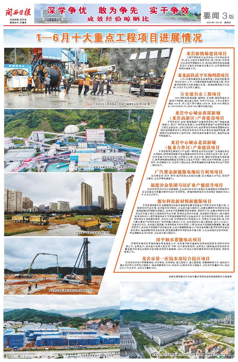1—6月十大重点工程项目进展情况