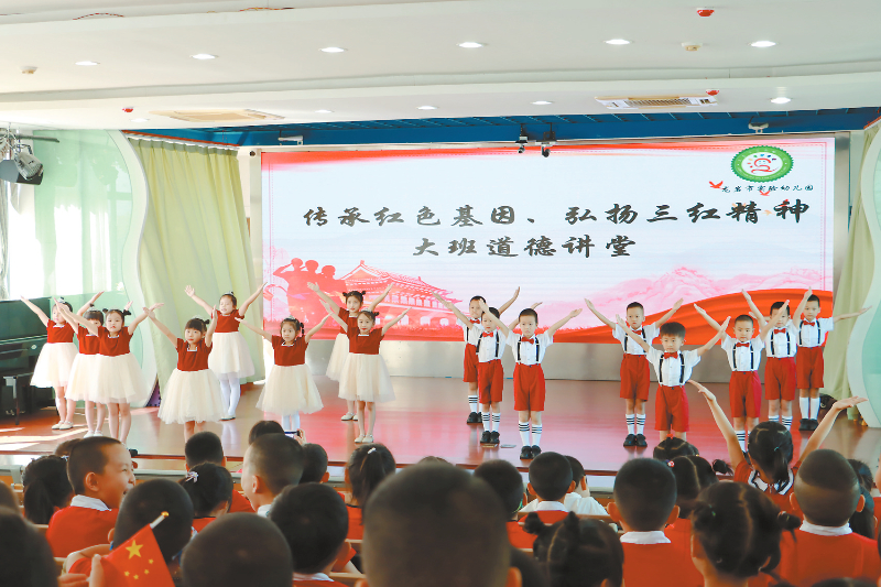 龙岩实验幼儿园开展“传承红色基因 弘扬三红精神”道德讲堂。 郭亦斌 摄