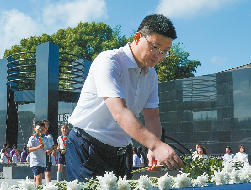 9月18日,在侵华日军南京大屠杀遇难同胞纪念馆,社会各界代表排队献花。今年是“九一八”事变爆发93周年。当日,“铭记‘九一八’事变爆发93周年”主题教育活动在侵华日军南京大屠杀遇难同胞纪念馆举行。新华社记者 李博 摄