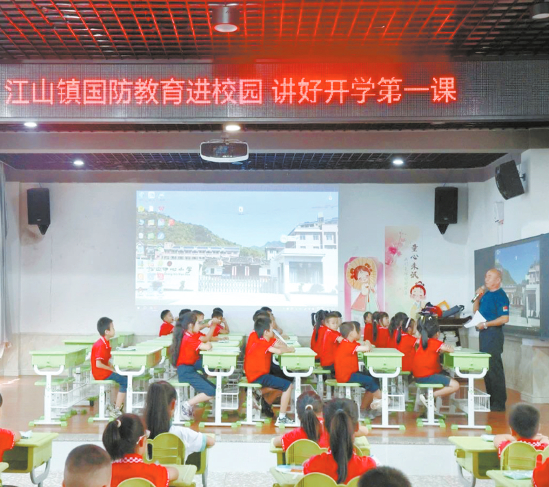 此次国防教育课进校园活动,不仅激发了学生们的爱国情怀,筑牢了他们国防意识的“精神长城”,还助力他们从红色教育中汲取精神滋养和前进力量。江山镇将继续深化全民国防教育的责任感、使命感,积极营造“关心国防、热爱国防、建设国防、保卫国防”的浓厚氛围,让国防教育入脑入心。 (通讯员 李婉婷 文/图)