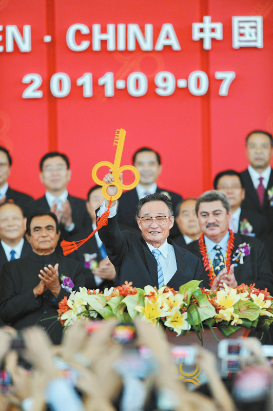 2011年9月7日,吴邦国同志在福建厦门出席第十五届中国国际投资贸易洽谈会开馆式。新华社记者 张国俊 摄