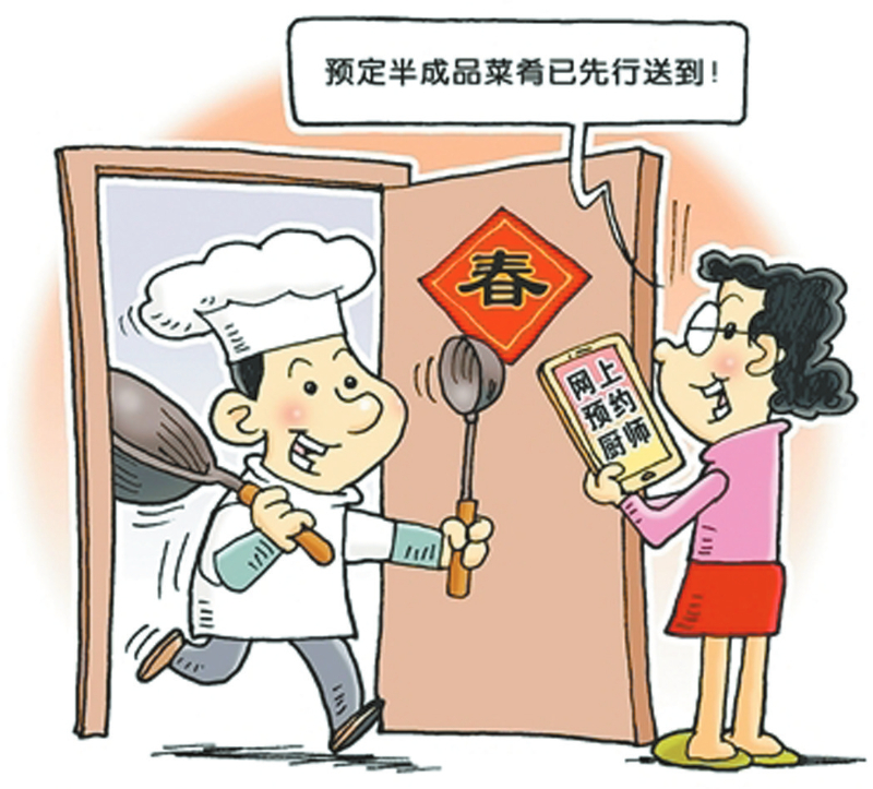 送“厨”上门 新华社发 徐骏 作