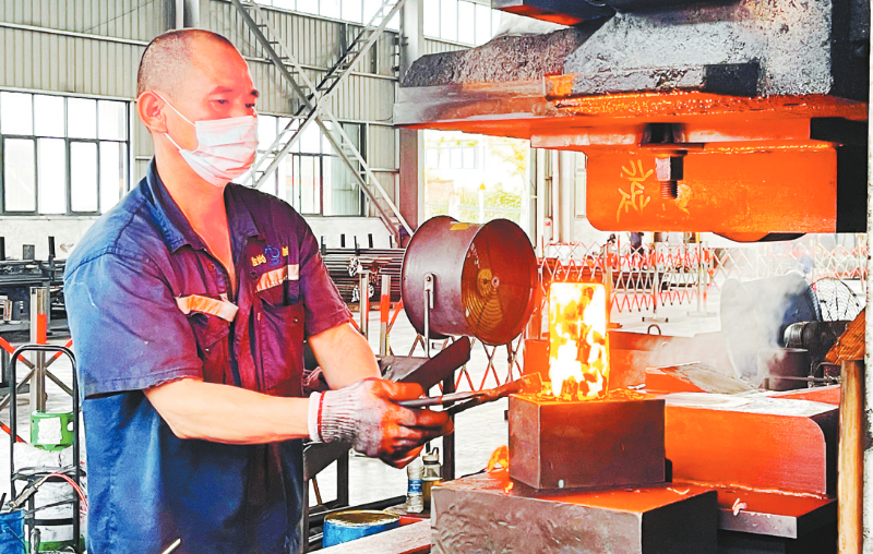 这是日前拍摄的永定工业园区福建金尚机械有限公司生产场景。该企业于2021年投产,次年成为规上企业,2024年二期项目投产,目前订单已排到明年4月。当前,工人正在锻造制坯,各条生产线开足马力赶制订单。通讯员 熊川 摄