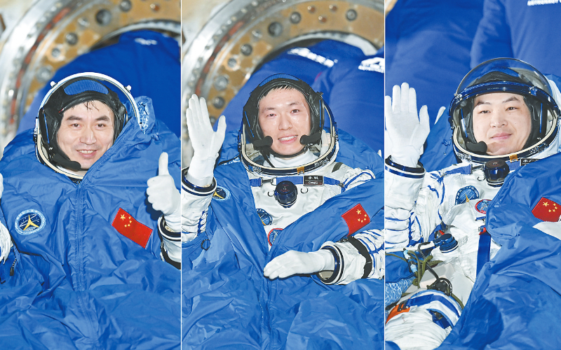 11月4日,神舟十八号航天员叶光富、李聪、李广苏(从左至右)安全顺利出舱(拼版照片)。当日01时24分,神舟十八号载人飞船返回舱在东风着陆场成功着陆,现场医监医保人员确认航天员叶光富、李聪、李广苏身体状态良好,神舟十八号载人飞行任务取得圆满成功。新华社记者 李鑫 摄