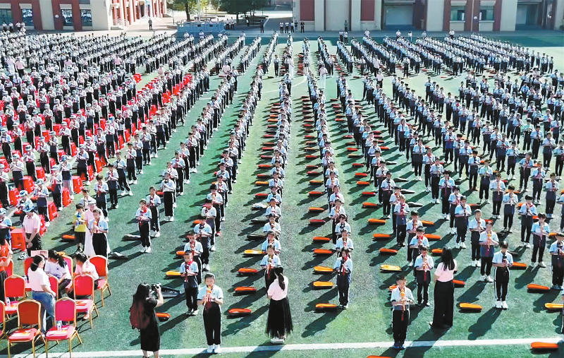永定区坎市彩金实验小学的全体学生葫芦丝表演《荷塘夜色》
