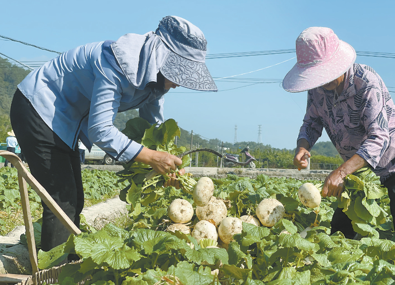 盘菜是武平县特色蔬菜,曾获国家农业部农产品地理标志,其根如碗,圆形,肉质鲜嫩甘甜,富含糖分、食用纤维、多种氨基酸和多种维生素,香味独特,具有开胃下气,利湿解毒等功效,适合煮食与腌制,并可生食,深受消费者喜爱。据《武平县志》载:“武平盘菜饮誉闽粤赣三省边陲,系武平客家人春节必备菜肴之一。”据中山镇农业农村岗负责人郑珠连介绍:“中山镇共种植盘菜200余亩,主要种植基地集中在阳民村。阳民村作为省级‘一村一品’示范村,不仅自身发展良好,还辐射带动了其他各村农户种植盘菜,为农民增收300余万元。”