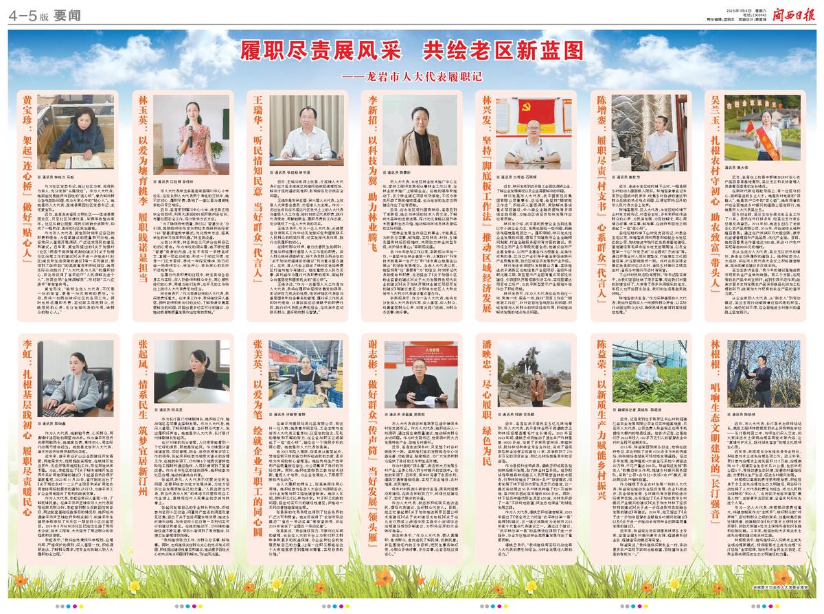 林根根以高度的责任感和使命感,积极投身于水土流失治理与生态文明建设,用实际行动诠释了人大代表的责任与担当,成为人民群众信赖的“知心人”,先后获评龙岩市基层“最美人物”、龙岩青年五四奖章、全省水利系统先进个人等。