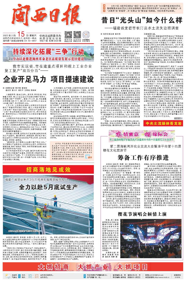 据悉,福建广闽铜业有限公司在上杭新建年产3.5万吨冷轧高精铜板带项目是广龙对口合作项目,由两家世界500强企业广州工控集团和紫金矿业合作投资兴建。项目总投资10亿元,分两期实施,其中一期建设年产2万吨高性能紫铜,黄铜高精板带及附属设施;二期建设年产1.5万吨高铜合金的高精铜板带及附属设施等。项目全部达产后,可实现年营业收入约25亿元,将助力上杭加快建设年产10万吨级以上高端铜板带产业基地,打造国内一流的铜精深加工产业集群。